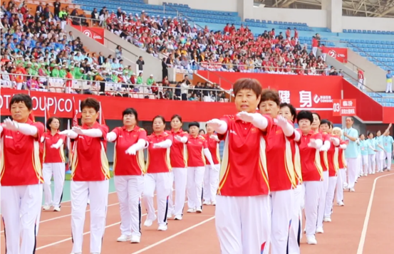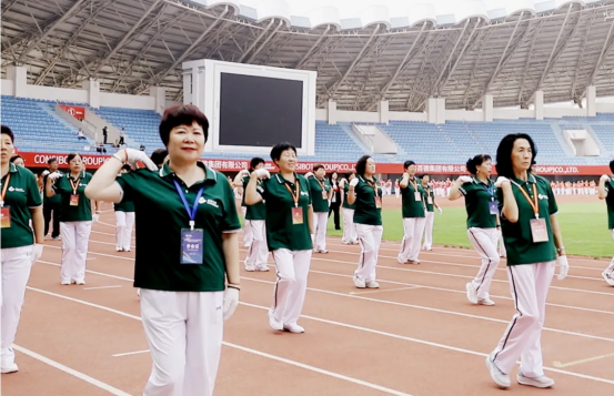 現場82支展演隊伍,浩浩蕩蕩、首尾相連,偌大的體育場瞬時變成一個律動的海洋。參賽隊員各個精神抖擻、熱情高漲,踏著康姿百德健身操音樂節拍,整齊劃一地舞動起來,贏得了全場觀眾的陣陣掌聲。